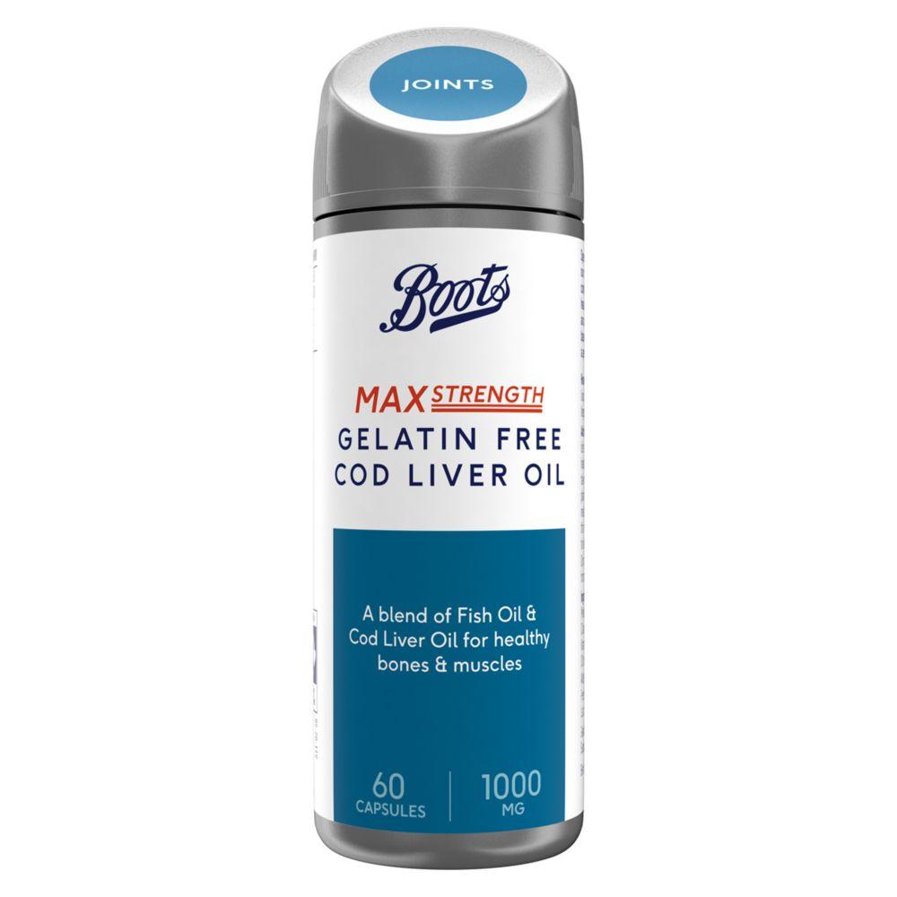 Gelatin Free Cod Liver Oil and Fish Oil 1000 mg Food Supplement, 60 CapsulesWhat does it do?Specially formulated with a blend of fish oils, our max strength Cod Liver Oil formula also contains added Vitamin D which helps maintain healthy bones and muscle, helping you support an active lifestyle. The capsule shell is plant based and is therefore suitable for those following a pescatarian diet.Free from Artificial Colours, Flavours and Preservatives. Lactose Free. Not suitable for Vegetarians.