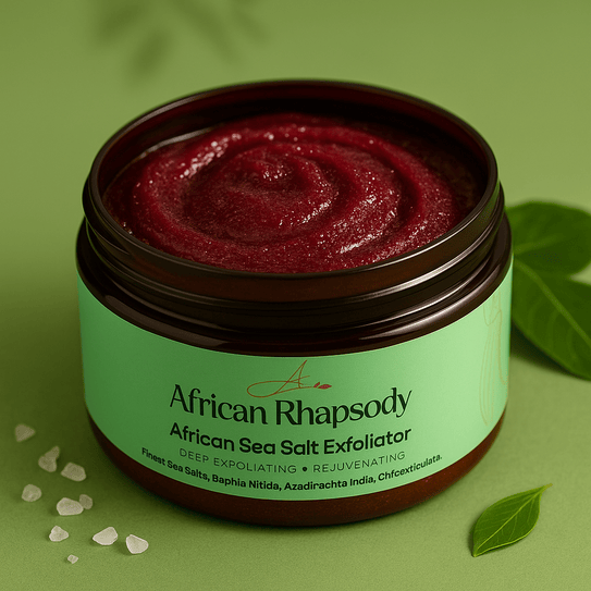 Reveal smoother, more radiant skin with African Rhapsody African Sea Salt Exfoliator — a natural blend of mineral-rich sea salts and nourishing oils that gently polish and rejuvenate the skin.