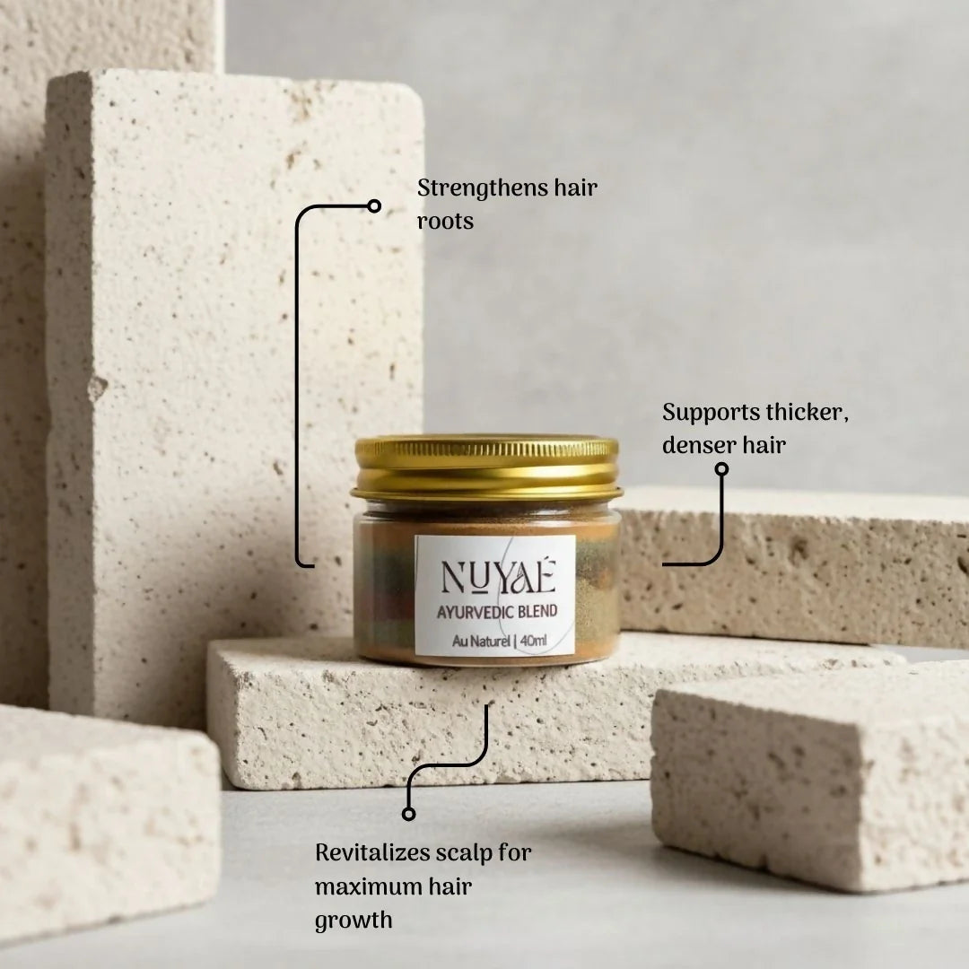 Ambrivine distills three ancient allies of hair care, fenugreek, amla, and bhringraj, into a potent elixir. Revered in Ayurveda for generations, this trio thickens, strengthens, and revives hair from root to tip. Crafted not for daily softness but for deep restoration, Ambrivine delivers a surge of nourishment, a drop of heritage that fortifies from within. Together, these ingredients form a concentrated elixir designed to restore strength, resilience, and vitality.